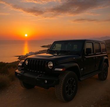 Explore the stunning island of Paros in comfort with our Jeep rentals. Experience breathtaking views and unforgettable adventures with our open sky Wrangler vehicles.
